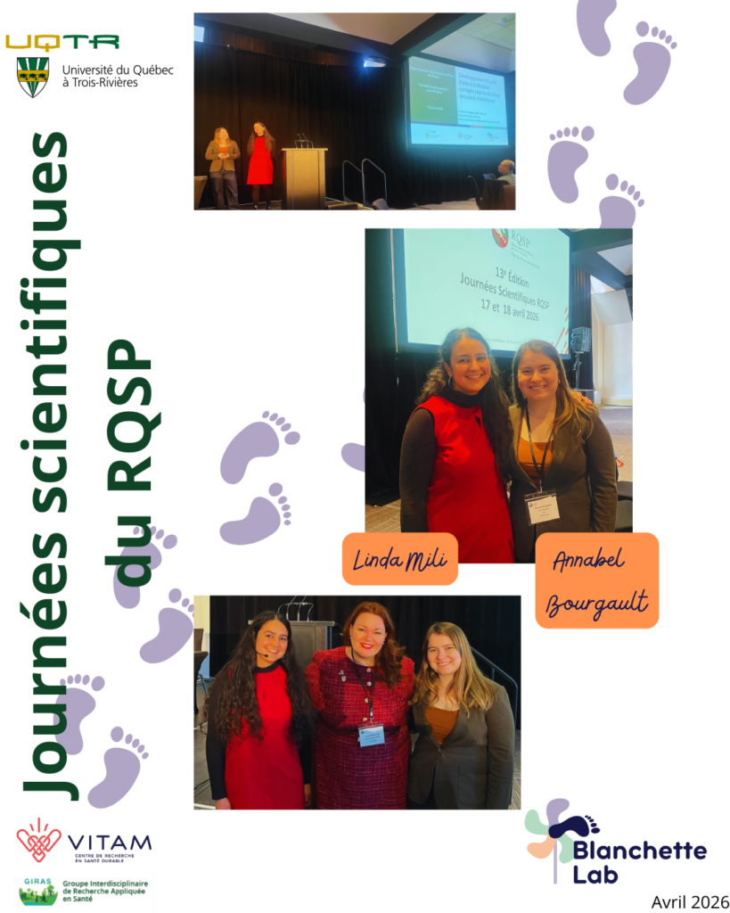 L’évènement a été un succès. Un des moments forts de ces journées a eu lieu le samedi matin, alors que Linda Mili et Annabel Bourgault ont présenté ensemble leur projet de maîtrise portant sur le développement d’outils patients d’aide à la décision partagée destinés aux patients.es dans le continuum des soins des pieds diabétiques et le choix de chaussures, orthèses et/ou modalités de décharge des pressions plantaires. Leur présentation professionnelle et authentique incluait également une simulation sous forme de jeu de rôle, permettant d’illustrer concrètement l’utilisation de ces outils dans ces décisions de santé pour accroître l’engagement de la personne au sein de ses soins. Blanchette Lab est fière du travail des étudiantes et de leur présentation auprès de la communauté de soins des plaies du Québec. Les outils seront disponibles sous peu au sein du site web.